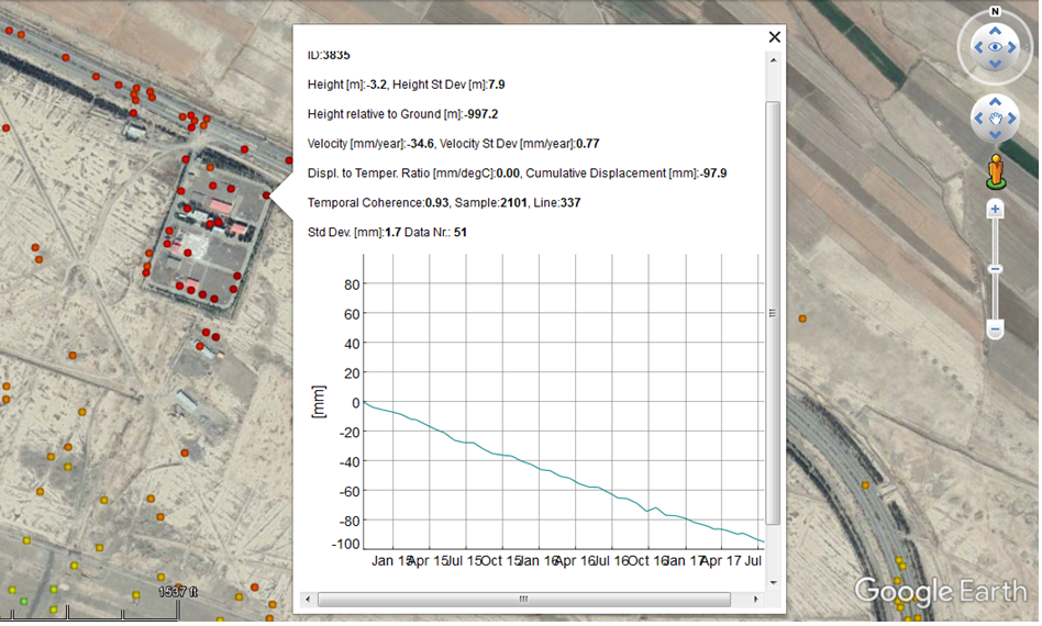منطقه ی فرودگاه امام خمینی، از شمال به منطقه ی سلطان آباد، از شرق به دریاچه ی مصنوعی فشافویه، از غرب به شهرستان رباط کریم و از جنوب به منطقه ی سلمان آباد منتهی می شود که بین طول های جغرافیایی 080296/51 و 246474/51 درجه شرقی و عرض های جغرافیایی 395680/35 و 502895/35 درجه شمالی قرار گرفته است. نتایج تحلیل سری زمانی داده های سنتینل-1 در بازه زمانی بین اکتبر 2014 و آگوست 2017 مقدار فرونشست سالانه 4 سانتیمتر در سال را نشان داده است.